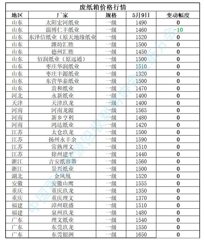 十大网赌app-【附:价格指数走势】废纸日报:5月9日 稳中有降 国废黄板纸价格